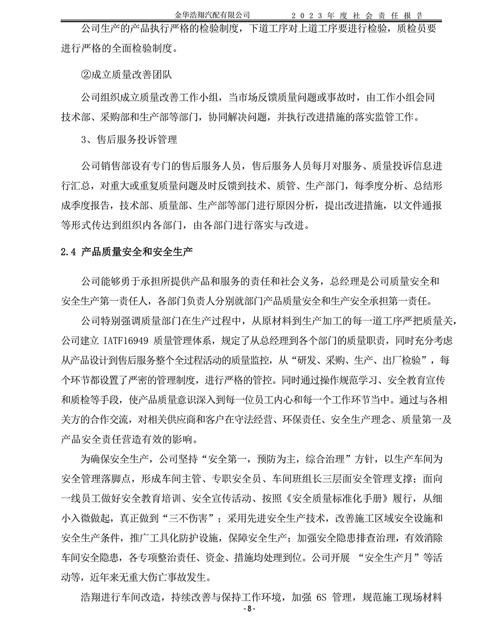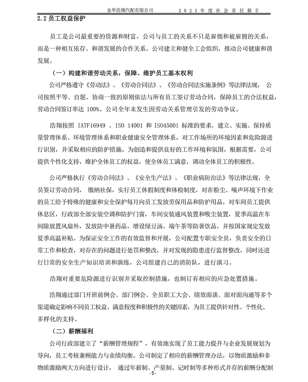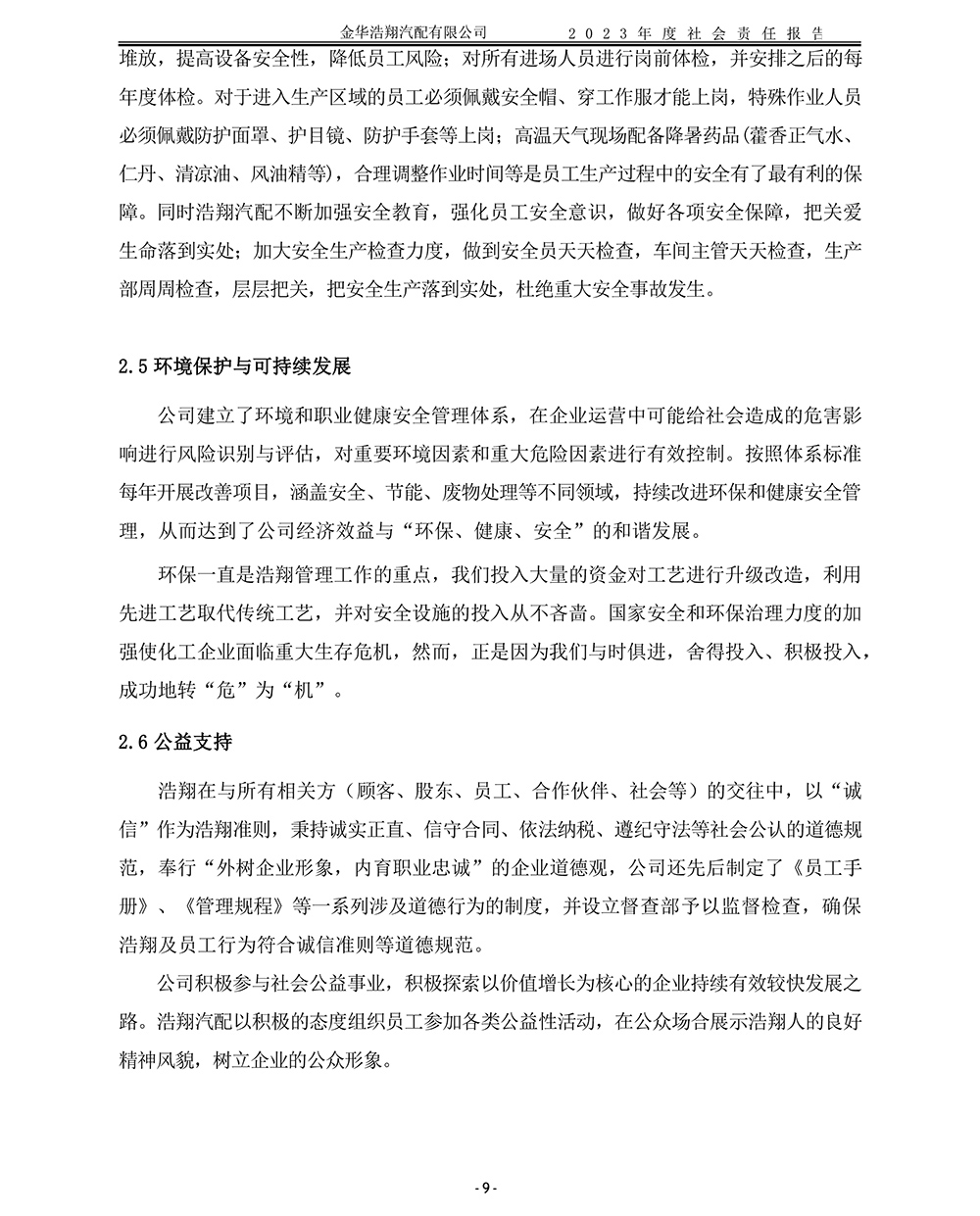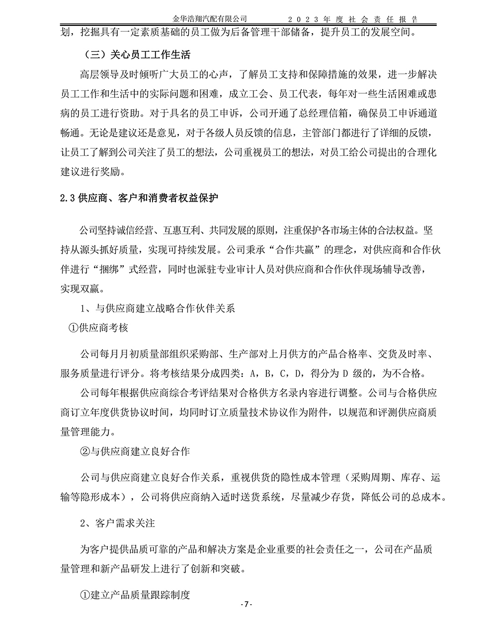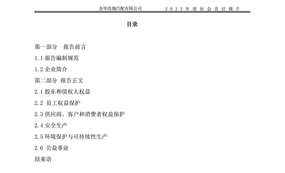 2023年度浩翔汽配社會責(zé)任報告